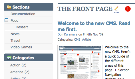 On the bottom of the Section Edit page is the Content Manager. This module displays all the content in this section and it's child sections.