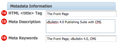16. Meta Keywords: Enter any meta keywords.